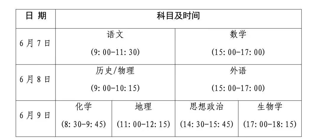 全国统考科目为语文、数学、外语3门,外语科目考试含笔试和听力两个部分;选择性考试科目由考生从历史和物理2门首选科目中任选1门,从思想政治、地理、化学、生物学4门再选科目中任选2门。